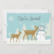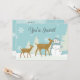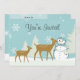 This cute personalised first birthday invitation features a mum and baby deer. They have walked into a retro winter woodland and have found a charming snowman with a tasty treat for a nose. *