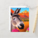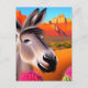 Cute Donkey in red cliffs of the desert with flowering cactus