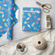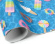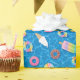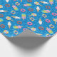 This desserts wrapping paper has a pattern with cute sweet treat floats on top of a second blue pool pattern. There are six different sweet treat floats. Ice cream cone, ice pop, lollipop, swirled candy, and two doughnuts. You can make this pattern larger or smaller.