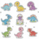 Make a statement with this playful sheet of 9 Cute Colorful Dinosaur Vinyl Stickers! This collection features eight adorable cartoon dinosaur characters in cheerful, bright colors, plus a central dinosaur egg/birthday cake design, making it perfectly suited for celebrations. Printed on high-quality, durable vinyl, these stickers are weatherproof, scratch-resistant, and ideal for personalizing water bottles, laptops, notebooks, and party favor boxes. The inclusion of the celebratory cake/egg makes this set a wonderful accessory specifically for a dinosaur-themed birthday party.