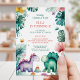 A charming floral jungle design with adorable watercolor dinosaurs, soft tropical leaves, gentle pastel colors, and a playful prehistoric atmosphere. Perfect for a little one’s celebration, this sweet dino-themed layout brings warmth, smiles, and magical birthday charm. A beautiful choice for families looking to create a memorable and joyful party.