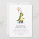 Celebrate your little one’s big milestone with this adorable dinosaur-themed 1st birthday invitation! Featuring a cheerful green dino holding a balloon and wearing a party hat, this design is perfect for a dino-loving boy’s birthday party. Fully customisable with your party details, it's a fun and playful way to invite family and friends to a roar-some celebration! Great for dinosaur-themed or neutral birthday party themes.