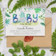 Get ready for a prehistoric celebration with this Cute BABY Shower Dinosaur Themed Invitation! Featuring an adorable watercolor baby dinosaur just hatched from an egg, colourful typography, palm leaves, and botanical greenery, this template combines calligraphy script and modern black typography against a classic white background. Personalise it for your baby shower and watch as your guests are captivated by this unique invitation.