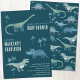 Fun little dinosaurs, Tyrannosaurus Rex, Triceratops and Diplodocus to welcome a little one into the world. Cute gender neutral baby shower invitation. Change the name and details to personalise. Back features a matching dinosaur pattern. Original art by Nic Squirrell.