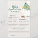 This adorable baby shower predictions and wishes card features a cute baby dino hatching from an egg. This interactive card is not only a fun game for guests but also a heartfelt keepsake for the new parents. With prompts for predictions about the baby's date of birth, time of birth, weight, height, hair colour, and eye colour, guests can have a blast making their predictions.