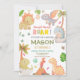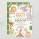 Stomp, Chomp, Roar!! Let's Party Like a Dinosaur! Featuring charming illustrations of friendly dinosaurs and lush tropical leaves, this invitation will set the perfect tone for your event.