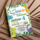 Our dinosaur birthday invitation is the perfect way to invite friends and family to your party. The design features a safari theme, with plenty of space for all the important details such as the date, time, and location of the party. Perfect for any age, gender and theme of the party, it is sure to impress your guests and get them excited for the celebration.