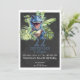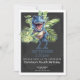 Cute blue dinosaur. Birthday party custom invitations, ideal for any age, add your own text at no extra charge - design featured on a chalkboard style background with tropical forest foliage - Customisable Invites printed or downloadable.