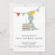 Cute Dinosaur Cake 1st Birthday Invitation. The header is large in stylish lowercase with the details beneath. Easily personalise the text. A coordinating powder blue is on the back