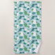 Cute dinosaur cartoon blue green dino animals beach towel