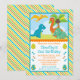 Cute colourful dinosaur friends design with tropical tree and sunshine, with dinosaur eggs and prints clipart on a stripey blue, green, yellow and orange background