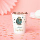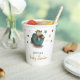 Adorable paper cups with an illustration of a baby dinosaur hatching from its egg. Personalised the text with your own information. Illustrated by Patricia Alvarez.