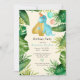 Cute Dinosaur Green Leaves 4th Birthday Party Invitation