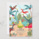 Playful dinosaur birthday invitation with colorful dinos and tropical greenery. A perfect choice for a fun prehistoric themed kids birthday celebration. Personalize with your party details. Original artwork by Caroline Bonne Müller.