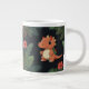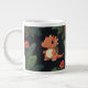 GREAT MUG FOR KIDS FEATURING A CUTE DINOSAUR STROLLING THROUGH FOREST SURROUNDED BY LEAVES AND HIBISCUS FLOWERS.