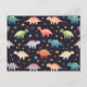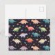 Cute Dinosaur, Navy Cute Colourful Dinosaur Patter Postcard
