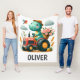 This personalised adorable and whimsical fleece blanket features a charming farmer dinosaur joyfully driving a red tractor carrying beautiful flowers. With its playful expression, this delightful creation adds a touch of enchantment to any space.
