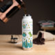 The bottle looks even better in real life. The ice cubes I put in lasts all day! I have my bottle with me all the time. It's summer and having something cold to drink feels amazing. With this bottle I always have something super cold. I have only tried the hot drink once and it lasted a long time as well. The color blue is a navy blue and the white printed on it is vibrant. It printed perfectly. I love my personalized smile water bottle.