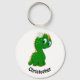 Cute green dinosaur with blue eyes and a happy smile. Below is a template to replace with your name.