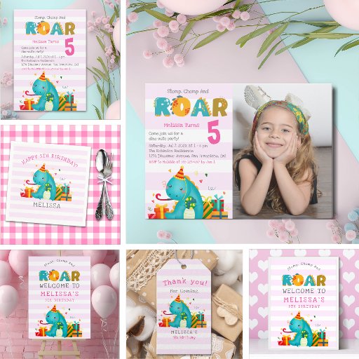 Get ready for an unforgettable birthday celebration! This dinosaur-themed invitation design and personalized party accessories are perfect for your little explorer's special day. Make your daughter's birthday even more special with these unique invitations that will wow your guests. Perfect for dinosaur lovers of all ages.