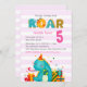 Cute Dinosaur Stomp Chomp and roar Birthday Girl Invitation