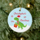 Celebrate your baby's first Christmas with this cute cartoon Baby Dinosaur T-Rex ( Tyrannosaurus Rex) holiday ornament which features a cartoon green baby dinosaur holding a festive red holiday Christmas gift . Personalise this magical ornament by amending the baby's name and year of birth. Can also be customised by changing 1st Christmas to 2nd or 3rd or any;thing else to make this an extra special xmas tree decoration. Great to give as a gift to 1st time parents or to buy as a keepsake.