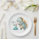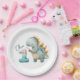 Cute dinosaur with a brush 1st Birthday Paper Plate