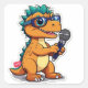 cute dinosaur with glasses holding a interview microphone, high quality, cartoon sticke.