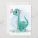 Cute Dinosaur With Pink Peony Baby Girl Shower Invitation