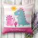 Cute Dinosaurs Baby Girl Pink Stripes Bold Kawaii Cushion
