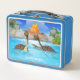 This is a standard metal lunchbox that appears to work just fine. We designed this box ourselves with an uploaded photo and custom text on the front and back. It looks absolutely beautiful except the front of the lunchbox is not centered like it shows in the photo. The print borders don't align with the inset flat part of the box where the preview photo online showed it perfectly centered in there. The back looks nice and centered though.