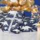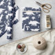 Whimsical dinosaur patterned gift wrap in navy blue and white