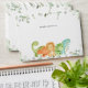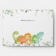 Complete your birthday stationery suite with this stylish envelope. Design features dinosaurs (brontosaurus, stegosaurus, triceratops, tyrannosaurus rex) and greenery on white background.