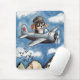 Cute Dog Aeroplane,Clouds Mountains,Custom Aviator Mouse Pad in a watercolor design.