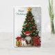 Cute Dog and Cat with Christmas Tree Greeting Card