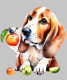 Cute dog and fruits