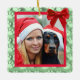 Green frame with paw prints and red bow.