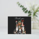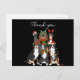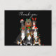 This thank you card features a fun, festive illustration of a group of six dogs dressed in holiday attire. Each dog has its own unique Christmas-themed accessories: Santa hats, reindeer antlers, a scarf, holiday lights, and even playful glasses shaped like Christmas trees. The dogs’ cheerful expressions and holiday decorations capture the joyful spirit of the season, making this card perfect for expressing gratitude with a touch of humour and charm. Ideal for dog lovers, this card brings a warm and festive vibe to any holiday thank you note.