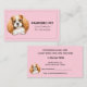 Cute business cards for dog groomers. Get your business noticed with this cute bulldog puppy. Set up next appointment on the back, list your services, and your contact information. Minimal pink background with cute spaniel.