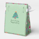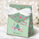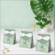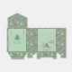 The gentle pistachio green background creates a warm and cheerful vibe, while the customisable greeting on the back lets you add your family name or special message. The sides feature a festive pattern on the darker moss green background, adding extra charm to this delightful favour box.