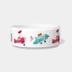 I love the pet bowls I bought for my 3 Granddogs when they come over my house. They are the perfect size to feed them when they are here for a visit. The design of their names on the bowls is great!