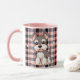 Start your day with a smile and this delightful mug! Featuring a cute Schnauzer puppy on a playful pink and black buffalo check background, this mug is the perfect way to enjoy your favourite hot beverages. Its large size and comfortable handle make it ideal for lattes, cappuccinos, or a generous cup of coffee or tea. The charming design makes it a wonderful addition to your mug collection and a great gift for any dog lover.