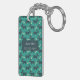 Cute Dog Pattern with Bone on Green Background Key Ring