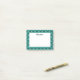 Sticky notes designed with a repeating pattern featuring a cute smiling doggy with a bone. A white frame layered over top to write on. Green background.