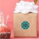 Thank you stickers designed with a repeating pattern featuring a cute smiling doggy with floppy ears and a dog bone. Green background.