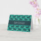 A birthday card designed with a repeating pattern featuring a cute smiling doggy with floppy ears and a dog bone. Green background. Message inside which can be customised.