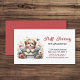 Cute Dog Pet Grooming Groom bath Service Business Card. Features a cute Shitsu puppy in a bathtub with pink script and black typography font. Personalise this card with your own business name and details make them your very own. These cards are perfect for making a very memorable impression and for advertisement promotion purposes.