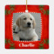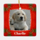 Cute Dog Pet Photo Red Green Christmas Ceramic Ornament