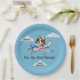 Design features a cute dog wearing a pilot's helmet and goggles flying through blue sky surrounded by white puffy fun clouds with his Cessna aeroplane. This paper plate sets the tone for a party everyone will love.