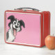 This is a standard metal lunchbox that appears to work just fine. We designed this box ourselves with an uploaded photo and custom text on the front and back. It looks absolutely beautiful except the front of the lunchbox is not centered like it shows in the photo. The print borders don't align with the inset flat part of the box where the preview photo online showed it perfectly centered in there. The back looks nice and centered though.